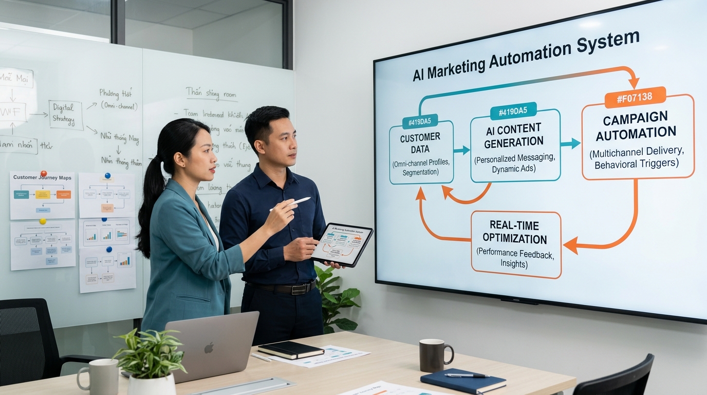 AI is rapidly entering marketing, but many businesses still misunderstand AI Automation Marketing as simply using AI to generate content or automate a few simple tasks. In reality, it is a comprehensive system that connects data, processes, and customer touchpoints to optimize the entire marketing operation. This article provides a clearer perspective so businesses can apply AI effectively, not in a fragmented way but as a scalable system.